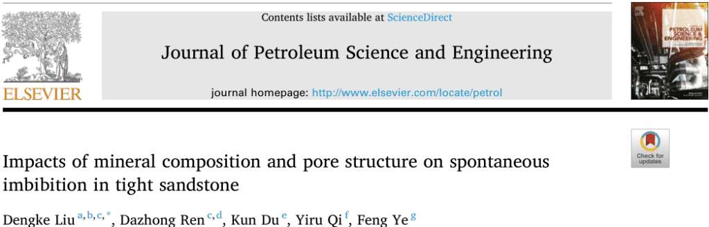 [1] Liu Y Y F. Impacts of mineral composition and pore structure on spontaneous imbibition in tight sandstone[J]. Journal of Petroleum Science & Engineering, 2021, 201(1).