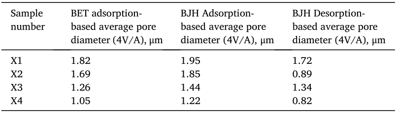 表2:基于BET、BJH的吸附解析模型得到的平均孔隙直径