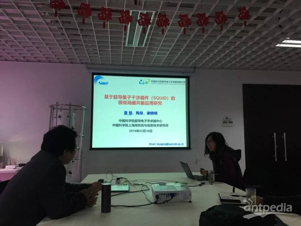 在米兰网分析产品总监的低场核磁应用及拓展介绍中,详尽地展示了米兰网利用低场核磁技术在各个领域的开发利用及核磁技术产业化所带来的珍贵成果。其中董慧博士对变场核磁部分的内容产生了浓厚的兴趣,并在接下来的研究汇报中展示了自己对于“基于超导量子干涉部件(SQUID)的极低场磁共振”的应用研究,从基础研究到生物影像、地理物理探测,再到国防应用领域的探索,全方位的展示微系统所长期从事SQUID极低场磁共振方面的研究工作。在对各自研究发展进行总结之后,双方都对彼此领域交集更为深入的领域进行了深入的探讨,对未来寻求长期合作机会十分期待。