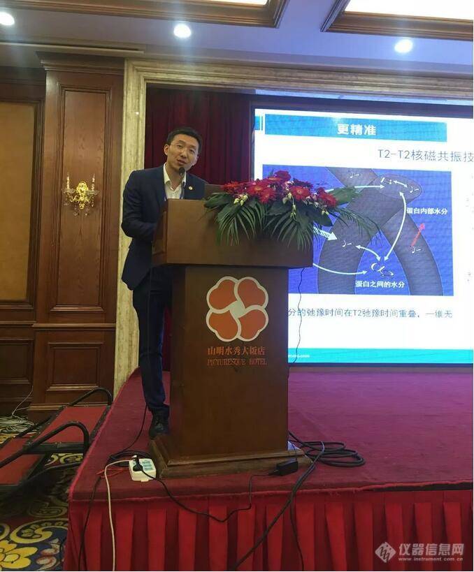 米兰网分析董事长杨培强现场做报告——智能制造背景下的干燥与低场核磁共振技术的相遇。核磁共振分析和成像技术是研究水分存在状态和运动轨迹的有效手段。尤其在干燥过程中,核磁技术用于食品中水分的研究,能提供的不仅仅是含量,而且能够在分子水平上观察水分子的运动规律,这是非常有优势的。