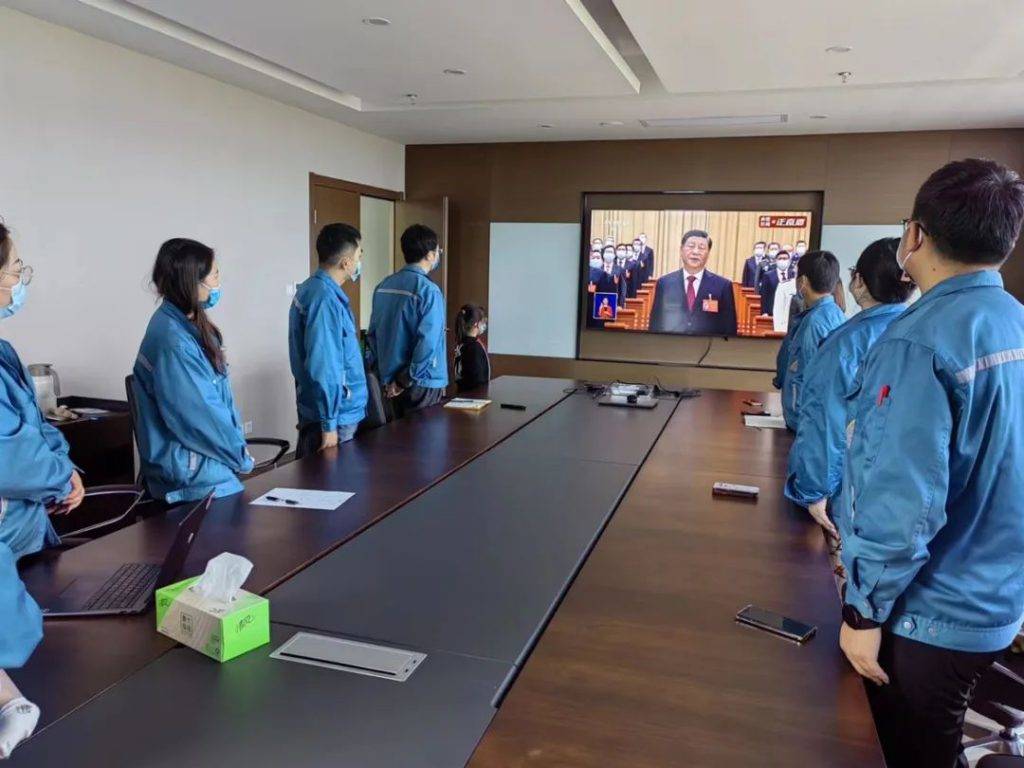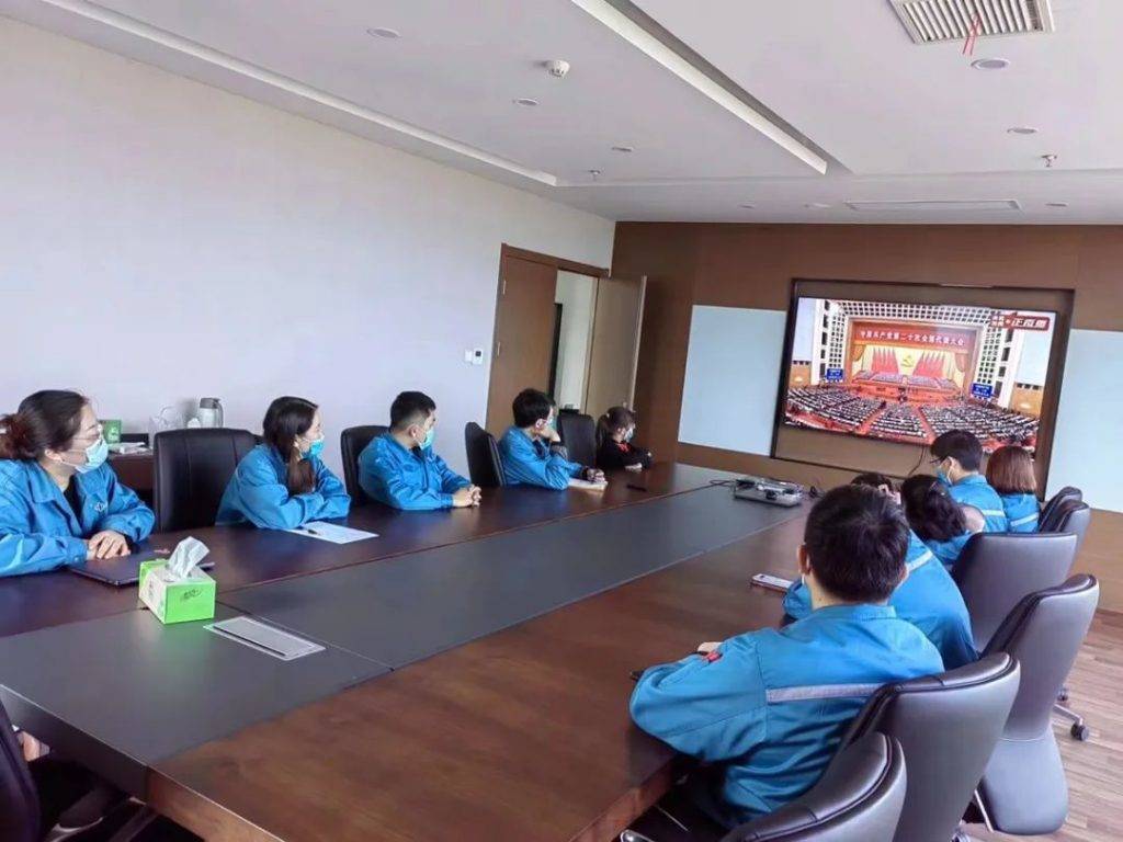 在这历史性时刻,中国共产党米兰网党支部组织公司20多名党员和职工代表观看党的二十大开幕会,认真聆听总书记的工作报告。