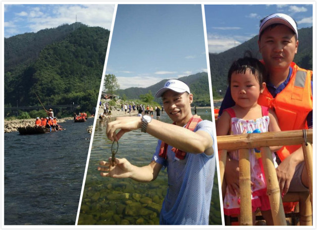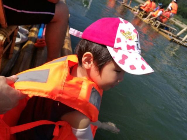 看此筏有勇士一枚,主动出击,遭致全筏被四处包围,水珠从各个方向飞来,无法抵挡,更无法抓捕疯狂泼水的镜头。一番激战,几番清凉!只叹征途太短暂,终究有重点!留个倩影,记住这精彩瞬间。还有那衣衫虽湿透,不忘练练抓虾功的哥们,同样乐在其中的小可爱们!