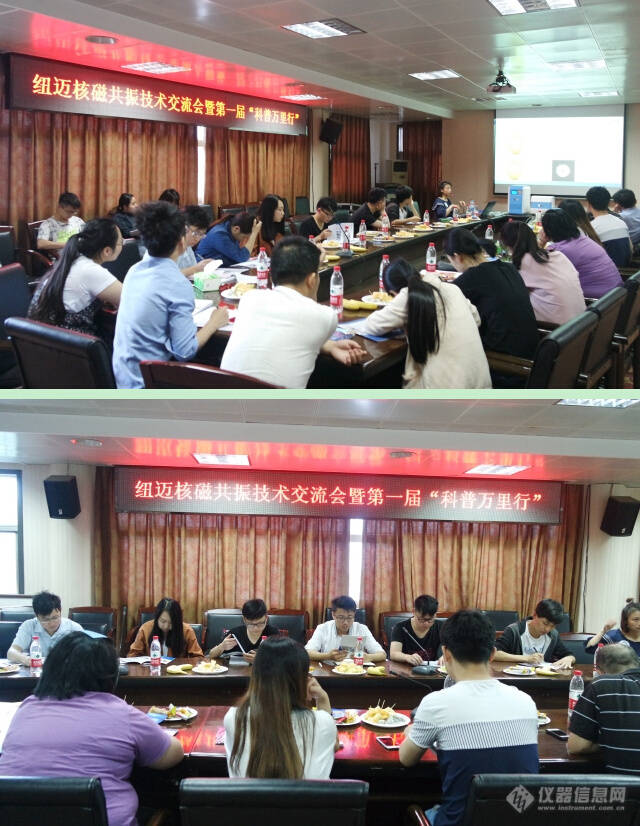 武汉轻工大学食品学院王学东副院长、潘丛道主任、陈季旺教授、陈轩老师以及学院其他老师、博士、研究生共计30余人参加本次活动。本次活动的最大亮点在于:针对与会学者的科研方向,呈现出相匹配的低场核磁共振新的应用解决方案和实际应用案例的同时,还为使参加活动的人员更直观的了解核磁,带来更切实的体验,米兰网特地携带一台小型仪器用于现场操作演示,通过宣讲+仪器操作演示双重科普方式,在演示、提问、讨论中,拓展了创新研究思路,带来科研上的启迪。