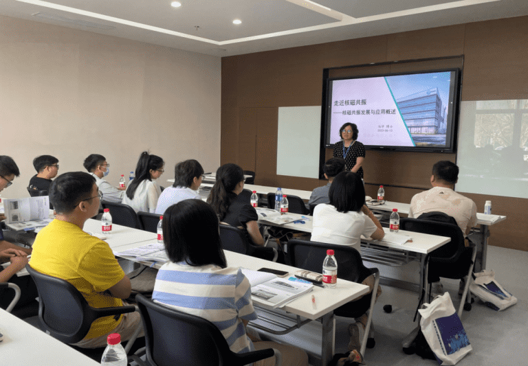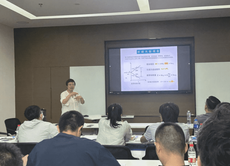 本次培训班采用理论与实践相结合的授课方式。培训开始之初,上海泰纽科教冯博士、复旦大学姚老师、苏州米兰网分析工程师们针对核磁共振技术发展、核磁共振成像及原理、变场核磁的原理及应用、核磁共振分析应用软件、成像软件、数据处理与图像处理软件等内容进行系统的讲解。
