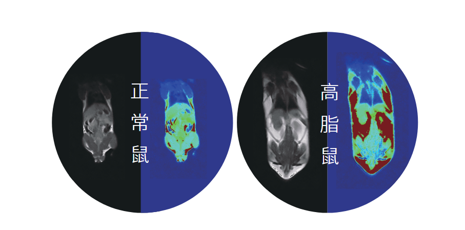 目前,低场核磁共振技术,已被广泛应用于小动物(大、小鼠)实验模型中,用于监测体内脂肪分布及沉积情况。这不仅有助于揭示人类肥胖代谢性疾病的病因,还为肥胖治疗药物的评价提供了重要依据。通过低场核磁共振技术结果表征,科研工作者能够直观地观察到小鼠体内脂肪的变化,从而更深入地理解肥胖症的发病机制。