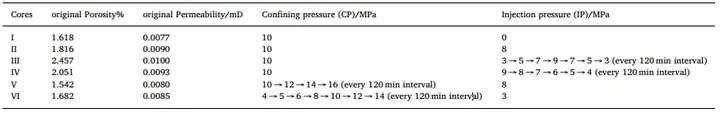 要结论如下: 初始注入阶段,总孔隙度显著增加,孔隙通道形成;恒定围压,注入压力减少时或恒定注入压力,围压增加时,中孔、大孔和裂隙破碎形成微孔和过渡孔。因此中孔、大孔和裂隙数量减小而微孔和介孔数量增加。在恒定注入压力增加围压或恒定注入压力和围压时,总孔隙度先减小后增加;注入流体或孔隙水打破孔隙壁,新孔隙生成。在围压和连续流体注入下有效应力和孔隙压力的改变导致孔裂隙结构的破裂、闭合和持续重组。