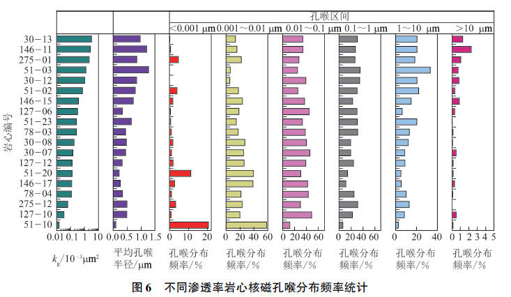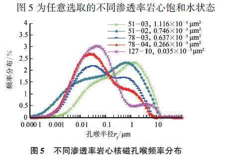 下图为不同渗透率岩心核磁孔喉分布频率统计