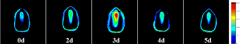 图3.玉米饱水过程的水分分布情况