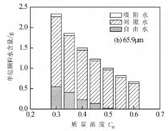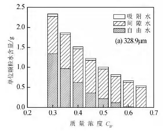 (2)在一定粒径下,吸附水含量与浓度无关,间隙水的含量随着浓度的增大而增多,自由水的含量则随浓度的增大而减少。在一定浓度下,吸附水和间隙水量与粒径呈负相关,自由水量与粒径呈正相关。