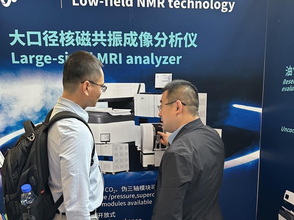 在为期数天的年会中,米兰网分析展示了其在多孔介质分析领域的研究成果和产品。米兰网团队带来的大口径核磁共振成像分析仪以及中尺寸核磁共振成像分析仪,以其卓越的性能和创新的设计,吸引了来自世界各地的专家学者和行业伙伴的目光。低场核磁共振技术作为一种创新的无损检测技术,它通过测量孔隙中含氢流体的弛豫信号,能够精确地表征多孔介质的孔隙度、孔径分布、流体饱和度以及渗透率等关键物理特性。不仅提高了多孔介质特性分析的准确性和效率,也为相关领域的研究和应用开辟了新的可能性。