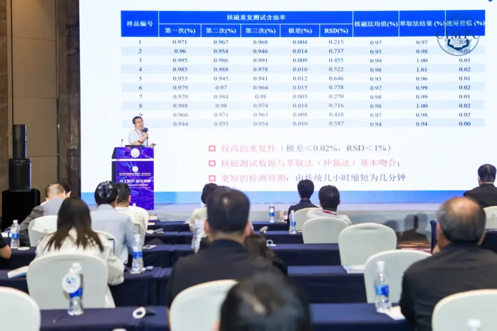 会议期间,米兰网通过展台与专题报告两种形式,集中展示了其在化纤质量控制领域的技术成果。公司技术总监冯博士在《低场核磁共振技术在化纤产品质量控制中的创新应用》的报告中,详细阐述了该技术的应用方案,为化纤行业的质量控制工作提供了新的技术视角。