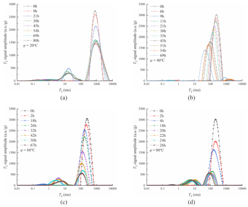 低场核磁共振技术是一种可以观察岩样微观变化的技术,对于岩样孔隙结构的变化情况、以及水在岩样中的渗流规律,能够将这些微观的变化通过驰豫谱定量的表征出来,同时通过成像技术可以将内部微观具象化,提供孔隙、流体的空间分布[2]。