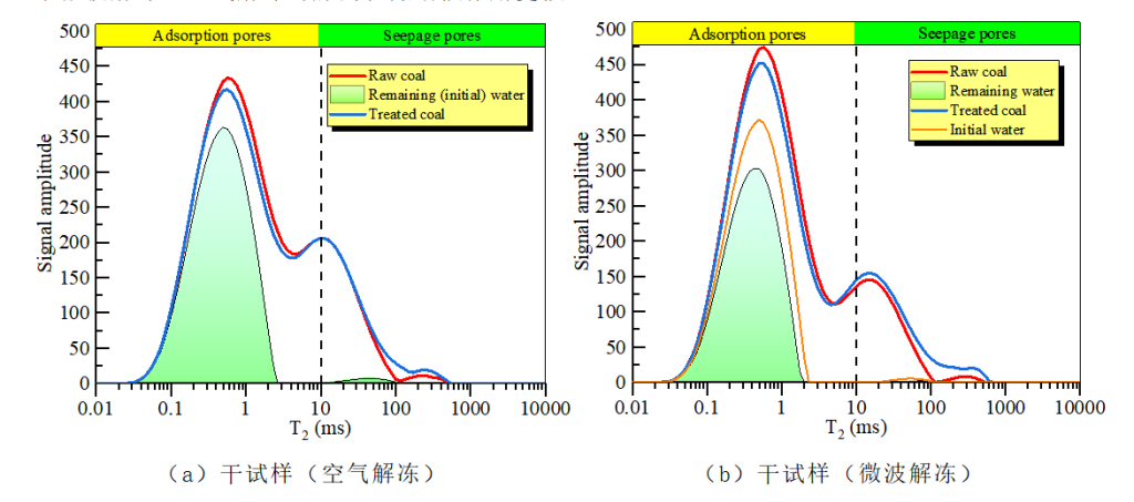 (7) 当解冻后的煤样温度恢复到室温时,再次进行核磁共振测试,以获得样品内部的剩余水分。