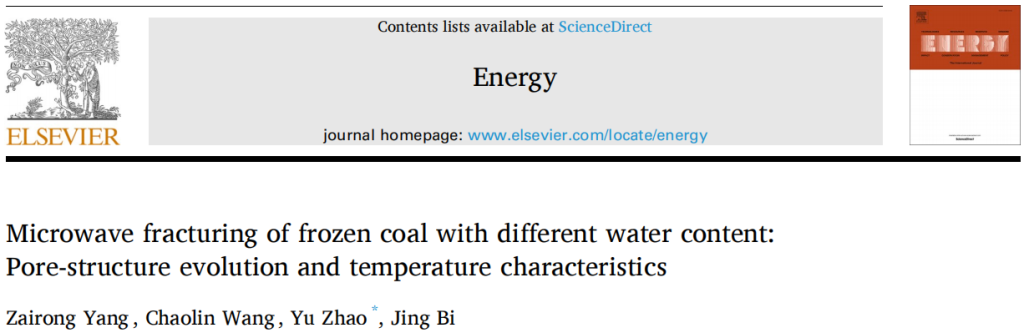 [1] Yang ZR, Wang CL, Zhao Y, Bi J. Microwave fracturing of frozen coal with different water content: Pore-structure evolution and temperature characteristics. Energy 2024;294(1):130938.