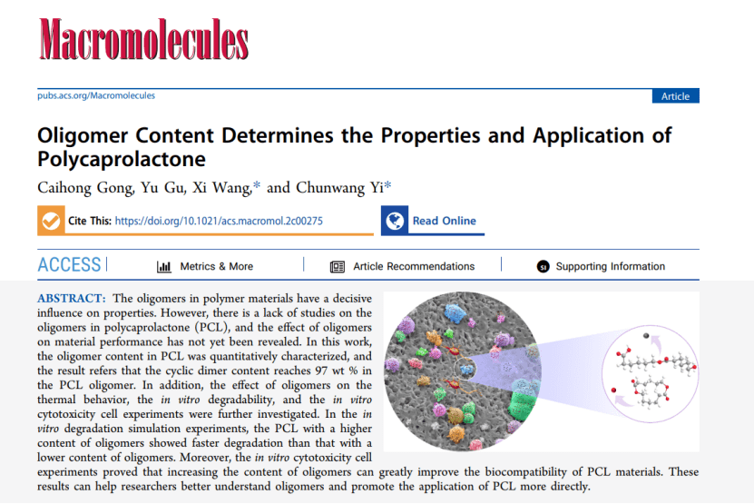 Oligomer Content Determines the Properties and Application of Polycaprolactone: https://doi.org/10.1021/acs.macromol.2c00275