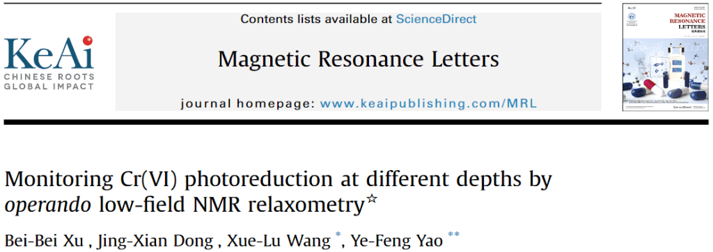 Bei-Bei Xu , Jing-Xian Dong, et al. Monitoring Cr(VI) photoreduction at different depths by operando low-field NMR relaxometry [J]. Magnetic Resonance Letters.