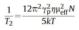 其中,纵向弛豫速率:(1/t2);氢回旋磁比:(γp)、Cr(III)离子的有效磁矩:(ηeff)、Cr(III)溶液的粘度:(μ);玻尔兹曼常数:(k);温度:(T);顺磁离子浓度:(N)。